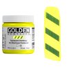 Fluorescent Acrylic Colors are intense, brilliant colors, produced from dyes surrounded by a polymer coating. Because fluorescent colors are transparent, greater intensity is achieved by applying them over bright white surfaces. Fluorescent Colors are not lightfast. For permanency, a topcoat of GOLDEN MSA Varnish with UVLS (UltraViolet Light Stabilizers) is recommended, although varnish and top coats will eliminate the fluorescent "glow" under black light.