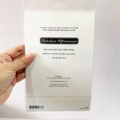 October Afternoon rub-ons are easy to use; with a clear visible release. They are durable and butter smooth. They adhere to virtually any clean dry surface. Acid and Lignin free.