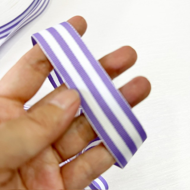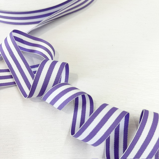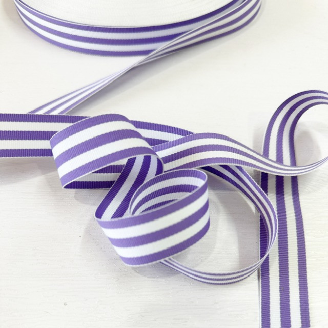7/8″ Stripe Grosgrain Ribbon – Lilac White Stripe