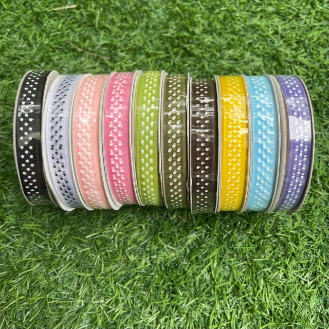 1 cm wide, dotted organza ribbon.