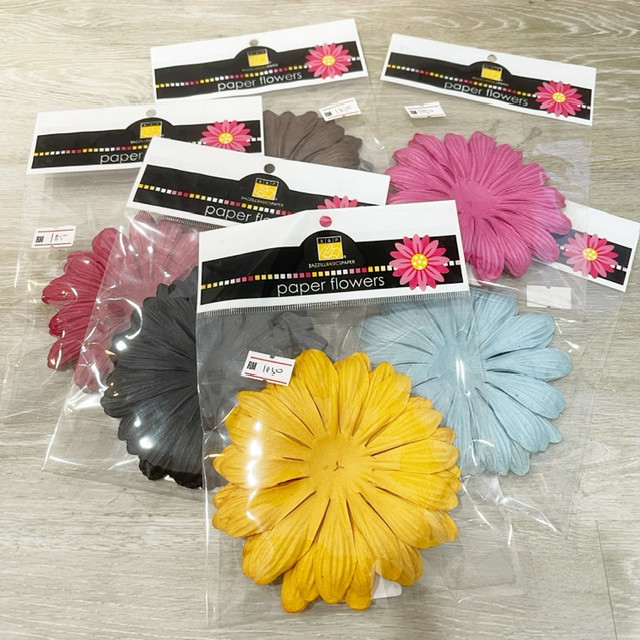 When Bazzill decides to create the perfect flowers, of course it will be made of paper! The pulp they use is mixed and syed to match some of their favourite Bazzill cardstock colors and then pressed into a mold. When each flower is dried it creates a unique and dimensional shape that holds its beautiful ridge and grooves. The flowers look beautiful stacked or used alone. Select a simple brad or a fancy rhinestone center and Bazzills Paper Flowers will add the perfect finishing touch.
