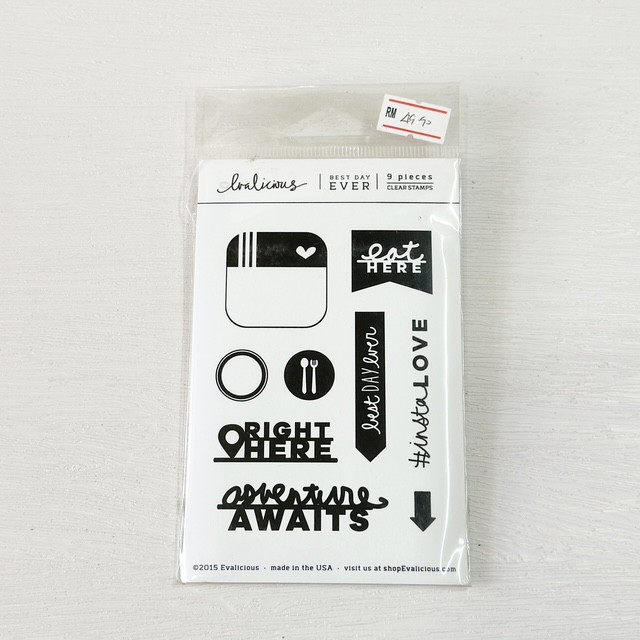 entire stamp set is 3"x4". made of photopolymer material that resists yellowing and leaves an impression that is comparable to red rubber. all you need is an acrylic block and some ink pads to stamp away.