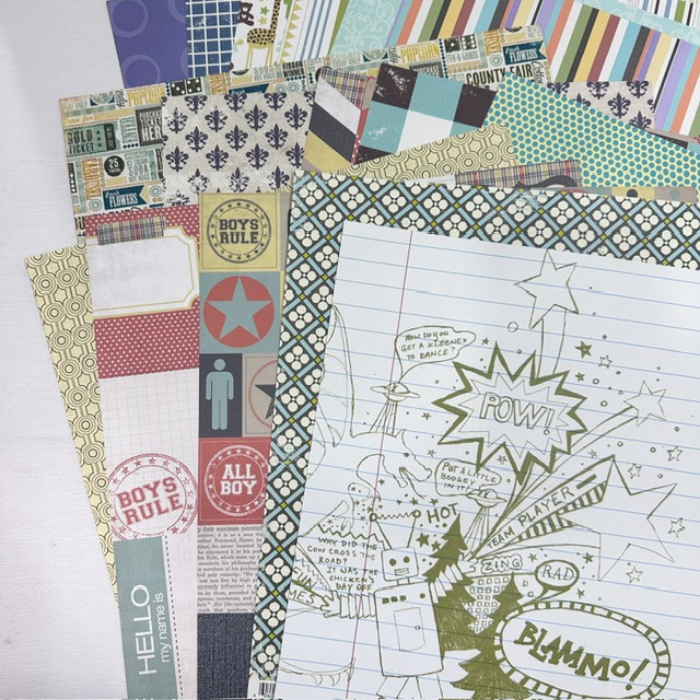BOY / MASCULINE ASSORTED 15 PCS PAPER PACK (Scrapbook Papers)