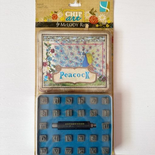 his is a set of metal stamps which can be used with the included handle, the mallet and board is sold seperately. The peacock alphabet is lower case and size of the alphabet is 1/2 Inch.