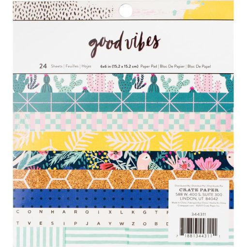 Crate Paper Single-Sided Paper Pad 6″X6″ 24/Pkg – Good Vibes