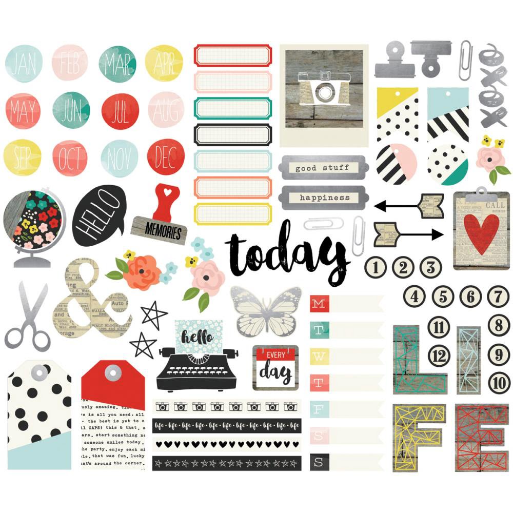 Description: Simple Stories-Life In Color Bits And Pieces Cardstock Die Cuts: Ephemera. The perfect addition to your paper crafting projects and more! This package contains seventy-eight unique die-cut pieces. Acid and lignin free. Imported.