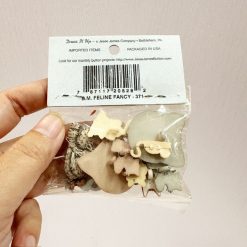 These adorable cat shaped buttons will make your projects look so cute. Use them on scrapbooks, or junk journals. The loops behind can be cut off easily with a wire cutter or fingernail cutter. The buttons can then be adhered down with liquid glue. These buttons are imported from USA