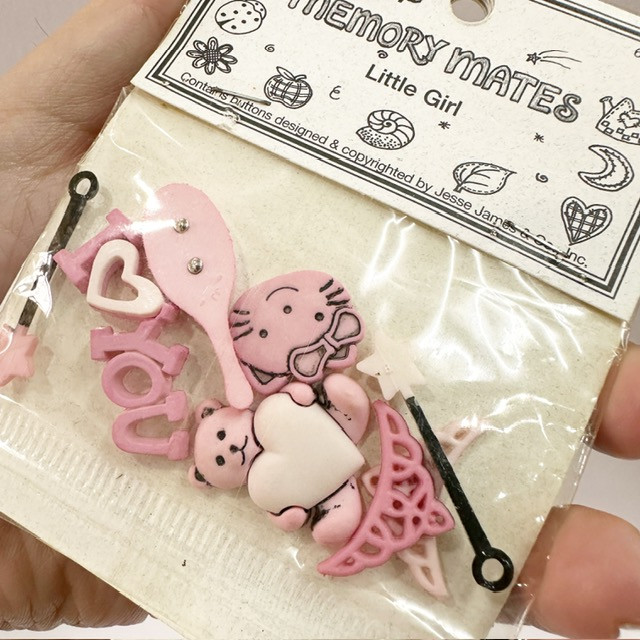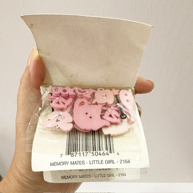 THese pack of buttons are in a pick girly theme. the buttons will be great on scrapbooks, journals or even arts and crafts such as picture frames. Just adhere with some liquid glue. the buttons are sized up to 3cm. They are imported from USA.