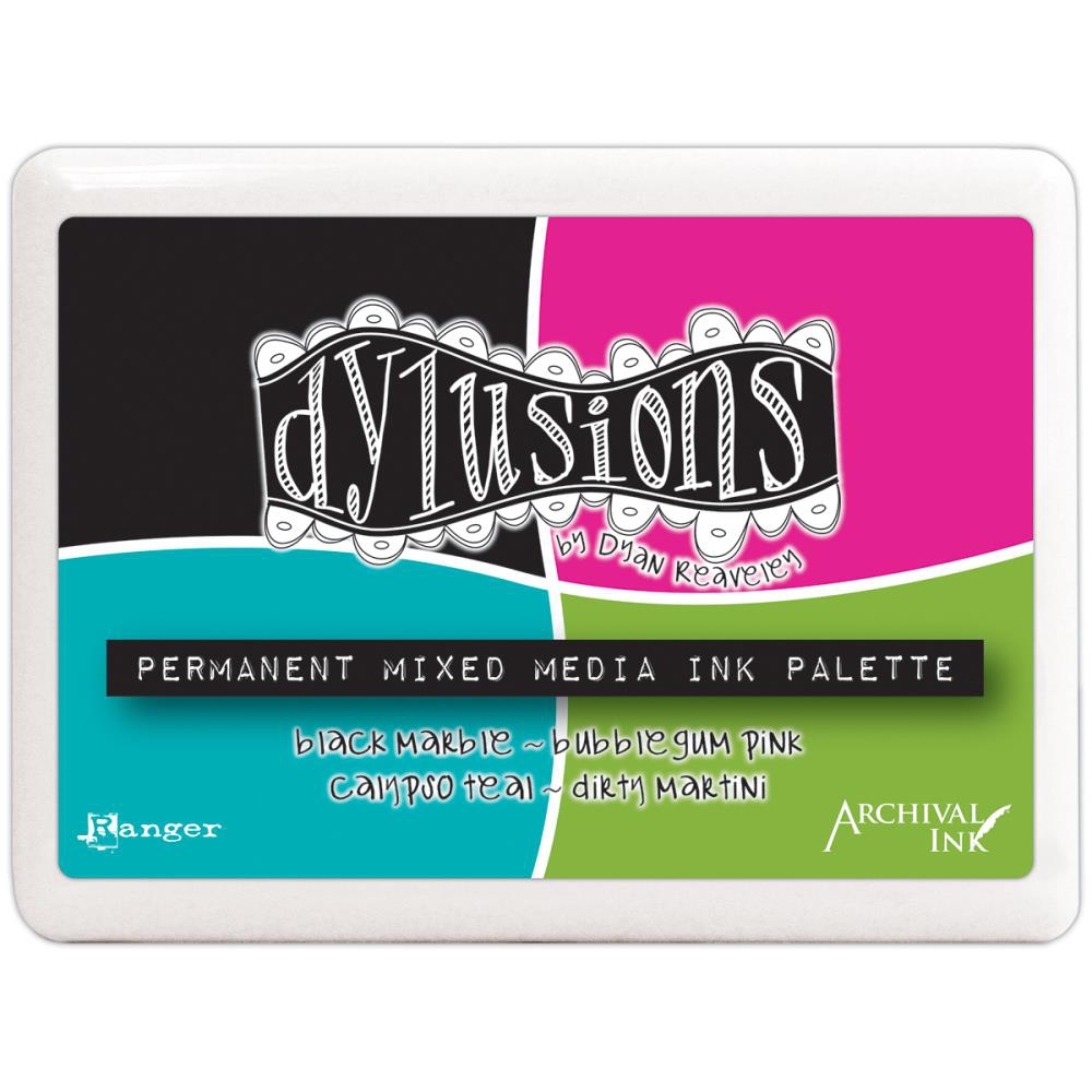 - Dylusions-Mixed Media Palette. This four-cell ink palette is ideal for mixed media projects! This package contains one 5×6-3/4×3/4 inch ink palette with four coordinating permanent archival ink colors. Waterproof when dry. Non-toxic. Acid free. Conforms to ASTM D4236. Made in USA.