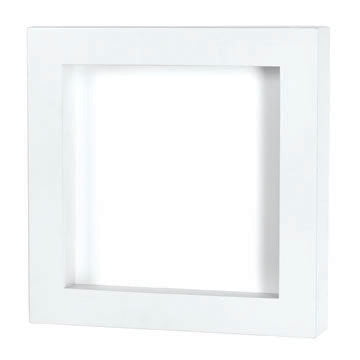 Show off a favorite scrapbook page! Outside measures approximately 10"Hx10"Wx1.75"D. Features sturdy wood construction, premium white finish, wood spacer insert and secure hanging hardware.