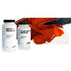 Fluid Matte Medium – A liquid medium useful for extending colors, decreasing gloss and increasing film integrity. Useful for blending with GOLDEN Fluid Acrylics to decrease the gloss, without increasing viscosity.