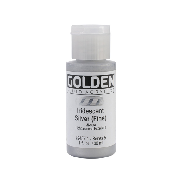 GOLDEN Iridescent Acrylics are one of the most unique products available to artists today. They offer highly reflective metallic variations when mixed with GOLDEN colors. The GOLDEN Iridescent colors achieve their reflective properties by synthetically reproducing several natural phenomena – the nacreous, or pearlescent, qualities found in fish scales or the dust of a butterfly’s wing, and the shiny and reflective qualities found in certain metals and minerals.