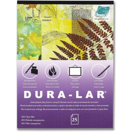 - DURABLE: Grafix Dura-Lar Ultra Clear Film has the best features of Mylar & Acetate. It will not tear or discolor, easy to cut and die-cut. Durable and flexible for many art, craft, school and office projects