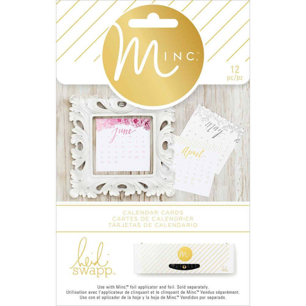 - American Crafts-Minc Calendar Cards. The perfect start to creating your own mini calendar! Use with the Minc foil applicator and foil to give it a unique shine (sold separately). This package contains twelve 4×4 inch calendar cards with a different month and design on each. All twelve cards are in black print.
