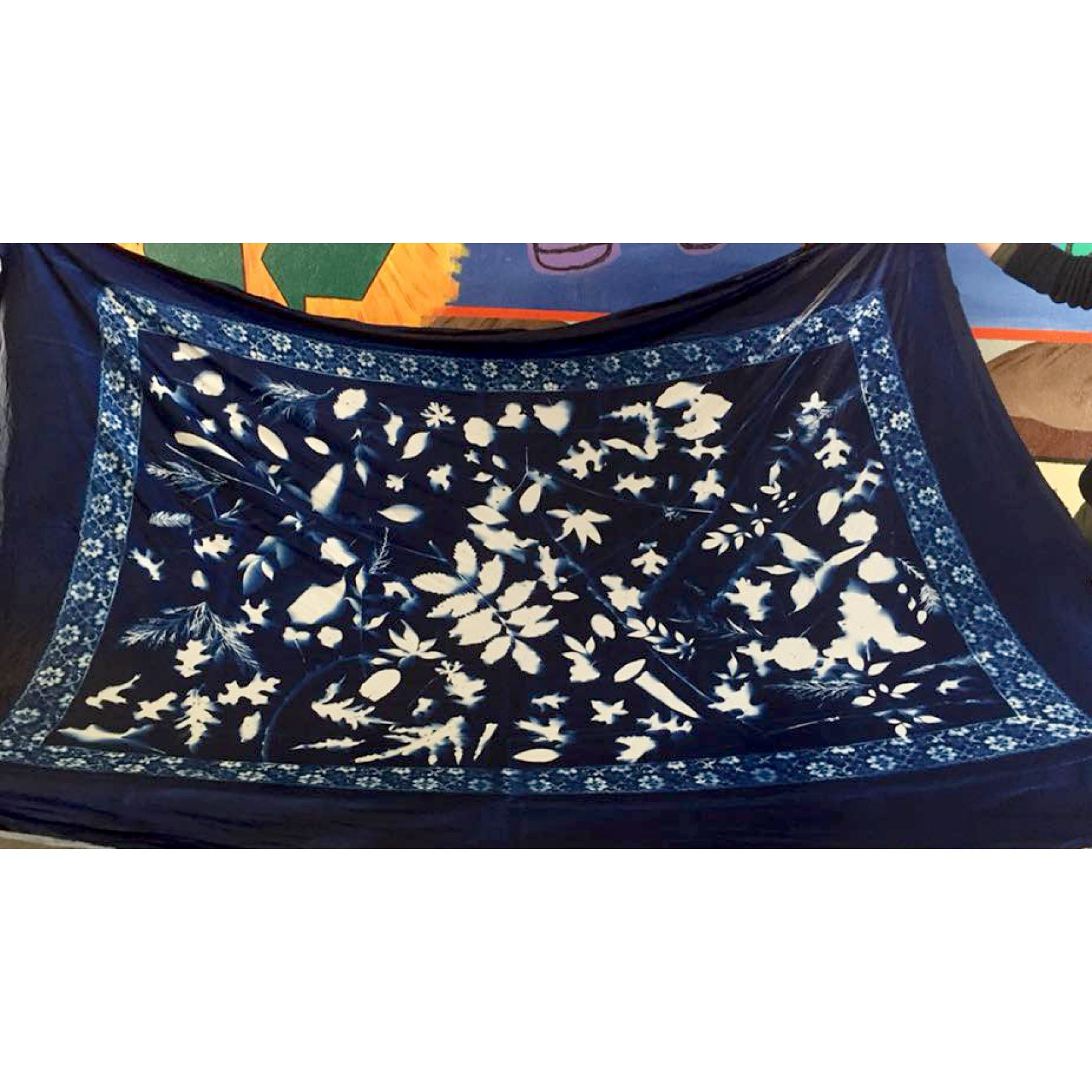 The easiest way to make large scale sun prints! Pretreated cotton sateen fabric is light-sensitive and comes ready-to-use for sun printing. Harness the power of the sun to make detailed prints from virtually any object that casts a shadow: tools, toys, plants, leaves, stones, sand, string, lace, etc. Simply place the object on the sensitized surface and expose to sunlight (UV). Use a digitally-printed photographic negative instead of an object to create full-resolution photographs on paper or fabric. Great for photographers, mixed media artists, printmakers, quilters, kids and more, the cyanotype process is easy, forgiving, quick, magical and fun. Capture the nuance of every shadow, a great group activity for any age! This package contains one piece 60×84 inch pretreated cotton fabric. Made in the USA.