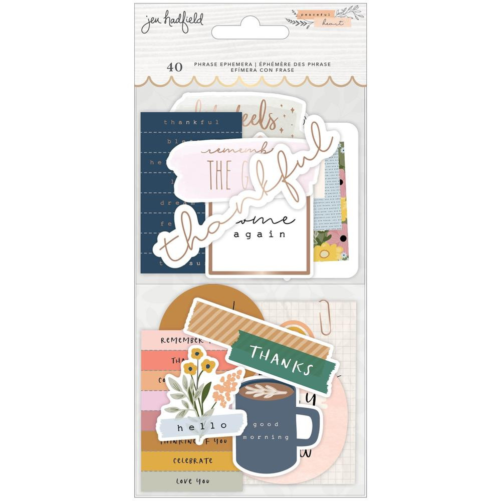 Jen Hadfield Peaceful Heart Ephemera Cardstock Die-Cuts – Phrase W/Gold Foil Accents