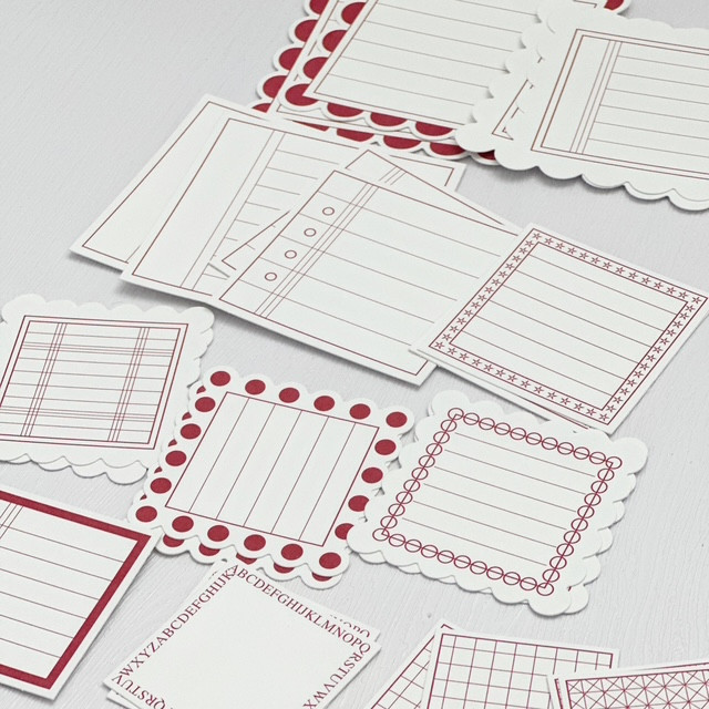 This listing is for a pack of journaling tags by Jillbean Soup. IN each pack there are twenty four tags, two pieces for each design. These tags come in varying colors, sold seperately.The smallest tag is about 3.75cm while the largest is around 7.5cm. Add these tags to your journals, scrapbooks, mini albums and more. They are acid free and archival quality and are imported.