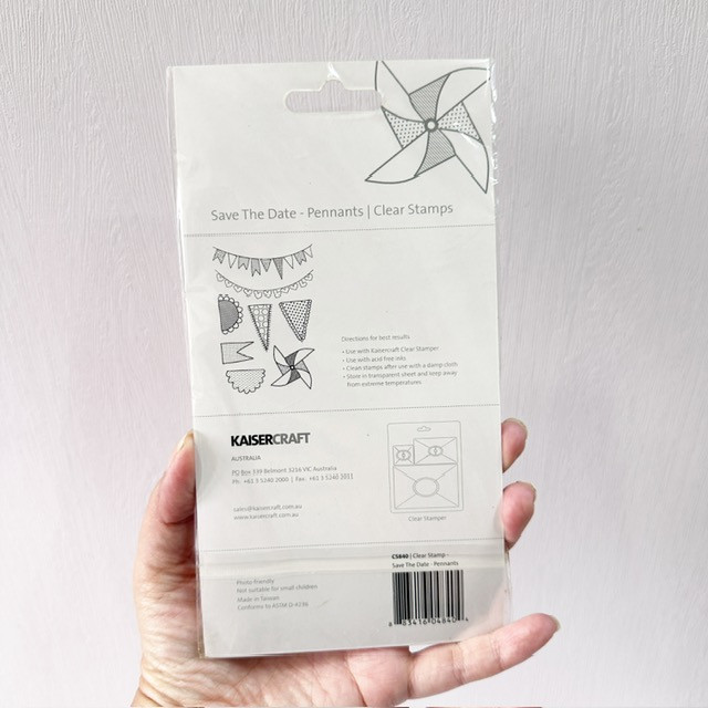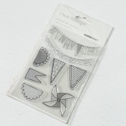 This stamp is on a 15cm x 11cm sheet. Designed by Kaisercraft this cute stamps can be used for decorations, repetitive patterns and so on. Paint or color in on the doodled flags. To use clear stamps, peel off the backing and attach the stamps onto an acrylic block. Use any ink pad and stamp away.