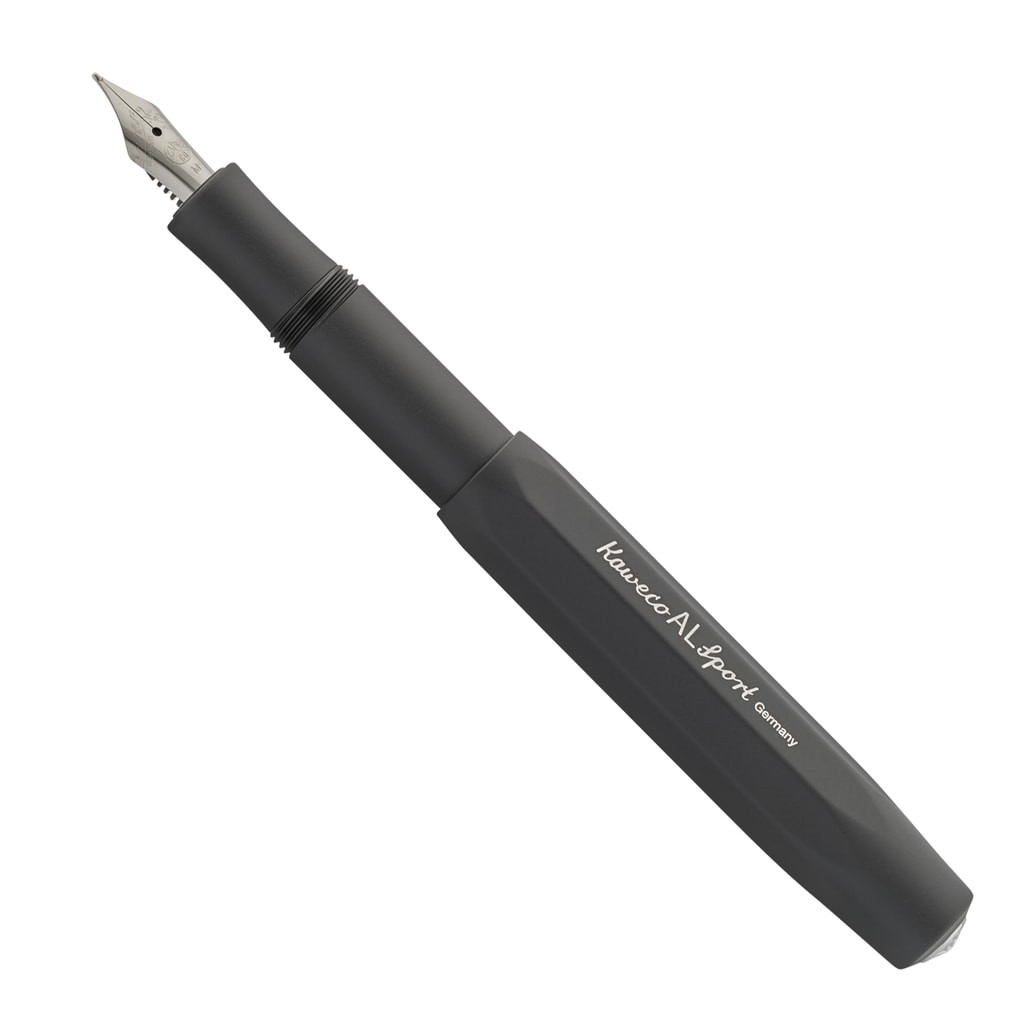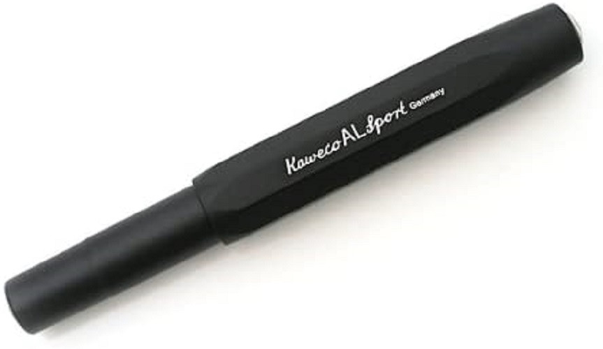 Fountain pen from the famous German company Kaweco. A typical octagonal body made of lightweight aluminum with a black surface. Space-saving, great for travelling.