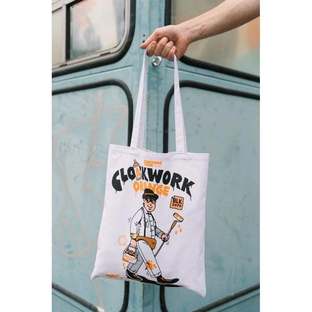 The new CLOAKWORK Orange design Montana Cotton Bag is the perfect accessory to celebrate the release of the CLOAKWORK Limited Edition Montana BLACK artist can.