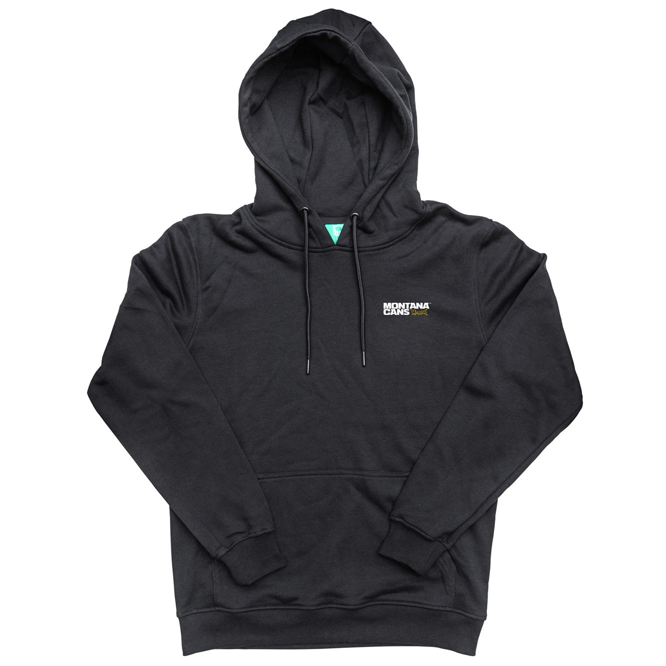 The Montana Cans Logo Hoodie Charcoal with a classic logo print in black American fleece comes in a classic hoodie cut. Another highlight are the small warning sign patches, which are only visible when the zipper is open.