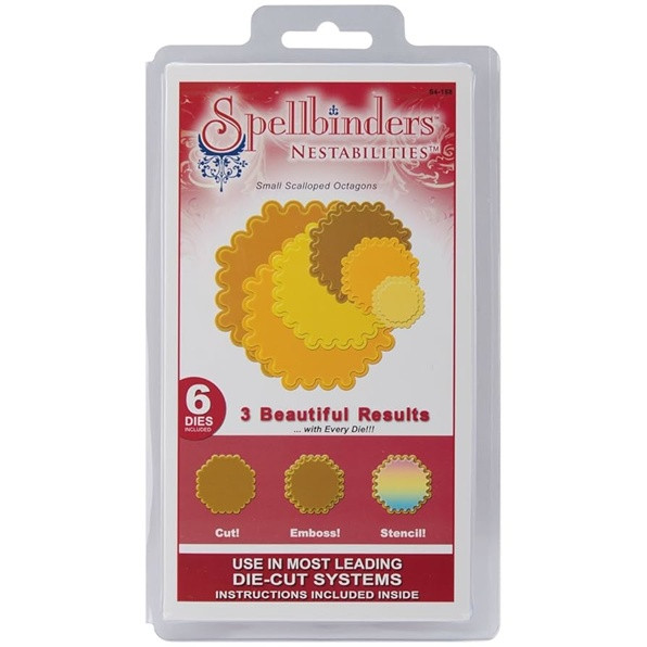 Spellbinders continues to produce new shapes in our famous Nestabilities Die Template Collection. Introducing the Scalloped Octagon. There are so many ideas that pop into the creative mind with this shape: elegant, bold, funky, fun…it runs the gamut. Run! Don’t "stop"! Order a set today. (Just a little octagon humor there.)