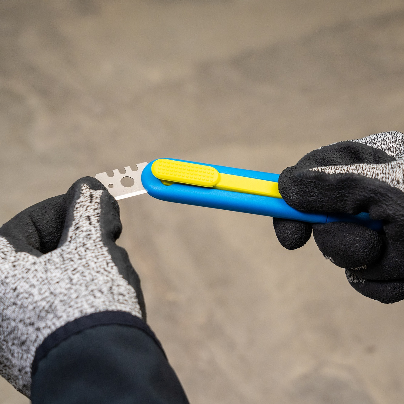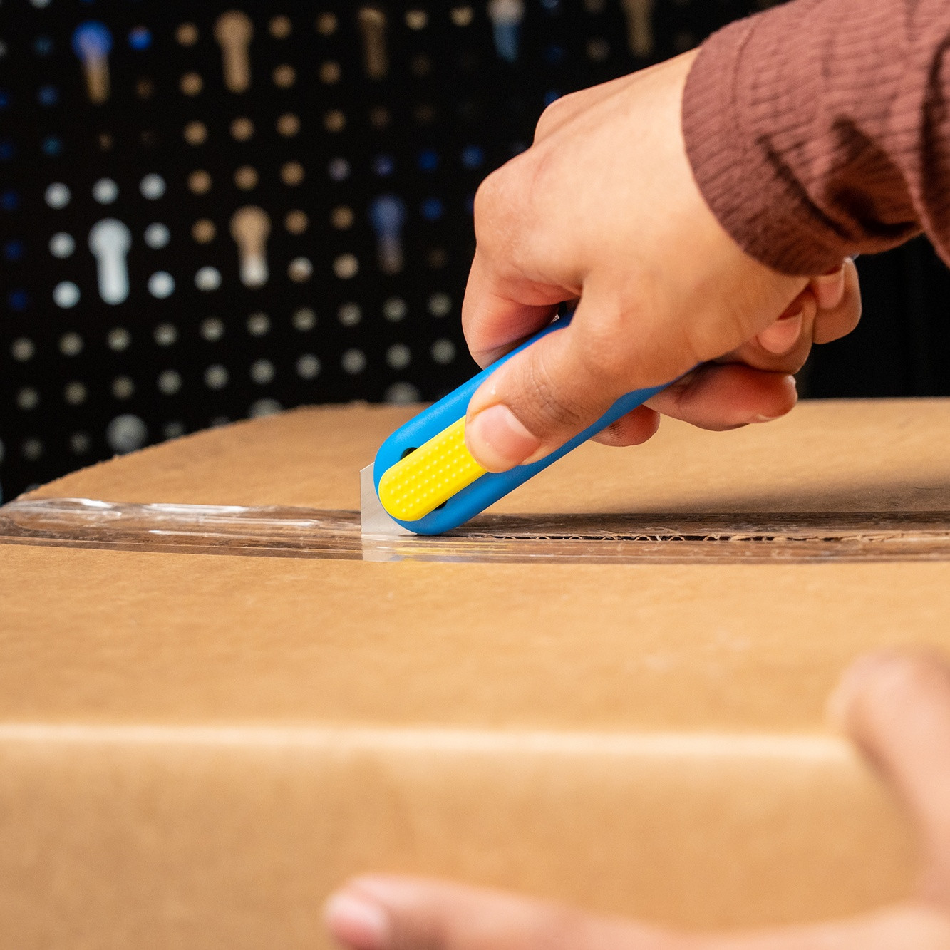 Auto-Retract Volo™ Safety Knife features a lightweight and slim profile with automatic blade retraction, offering an ultra-convenient and safer cutting solution for everyday cutting materials in mid-to-high volume operations.