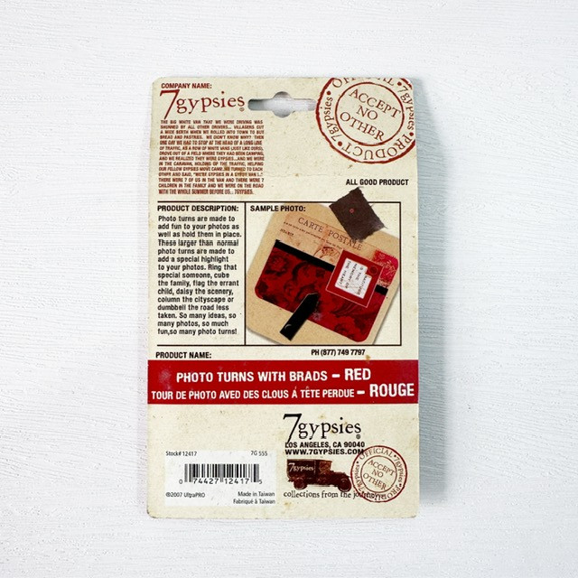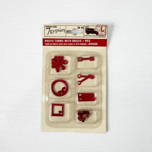 There are little flower shapes, picket shapes, diamonds and more, 6 cute styles in all, in such wonderful colors. Our new photo turn kits add something unique to every project. Use them almost anywhere! Red photo turns in 6 different shapes, 4 each per pack, brads included. 1" x .75"
