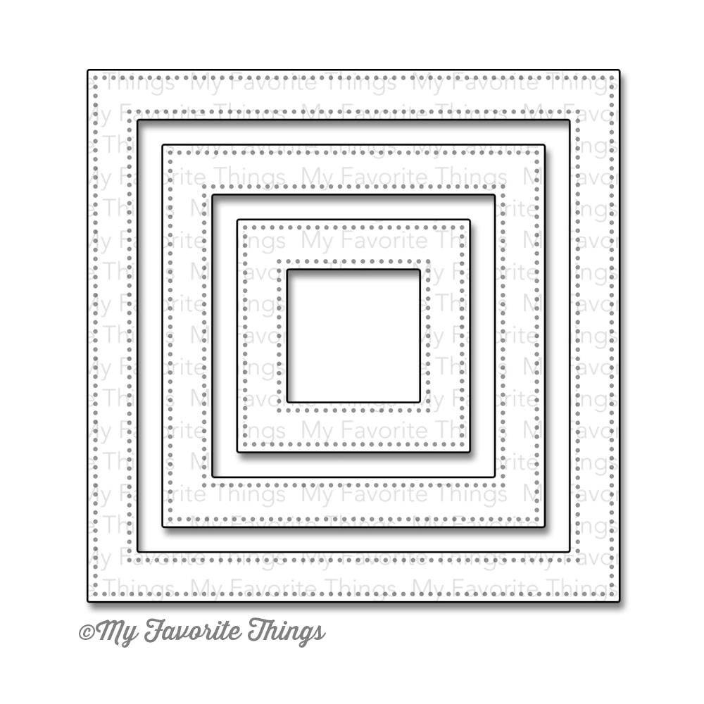 - My Favorite Things-Die namics Dies. These steel dies will cut through cardstock, thin chipboard, 1/4 inch cork, felt, acetate, sticky back canvas, fabric, denim, sandpaper, 2mm craft foam, wood veneer paper, photo magnet sheets and much more! They work with virtually any die-cutting machine that will accommodate wafer-thin dies and are sure to become an essential ingredient in your paper crafting process. This package contains Pierced Square Frames: a set of three metal dies on one 4-1/4×4-1/4 inch magnetic sheet. Made in USA.