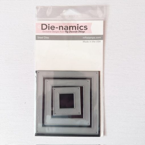 - My Favorite Things-Die namics Dies. These steel dies will cut through cardstock, thin chipboard, 1/4 inch cork, felt, acetate, sticky back canvas, fabric, denim, sandpaper, 2mm craft foam, wood veneer paper, photo magnet sheets and much more! They work with virtually any die-cutting machine that will accommodate wafer-thin dies and are sure to become an essential ingredient in your paper crafting process. This package contains Pierced Square Frames: a set of three metal dies on one 4-1/4×4-1/4 inch magnetic sheet. Made in USA.