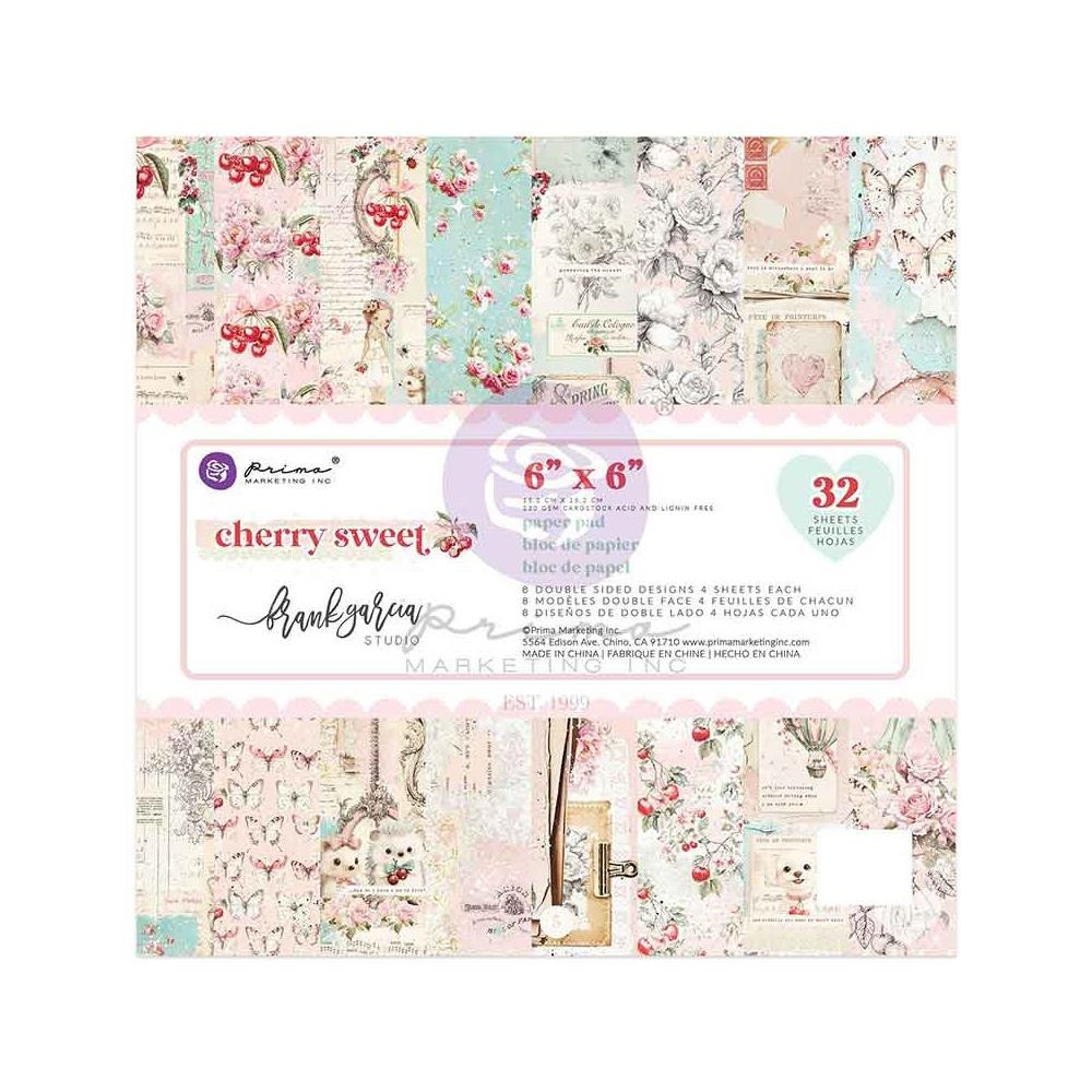 Cherry Sweet by Frank Garcia is a charming and whimsical collection, brimming with delightful critters, fanciful elements, and a dreamy pink palette that brings a sweet fantasy to life. Florals and vintage elements come together with this line that is perfect for junk journals, mini albums, scrapbooking, card making and so much more. Designed by Frank Garcia for Prima Marketing. 6 x 6 Paper Pad includes 32 sheets