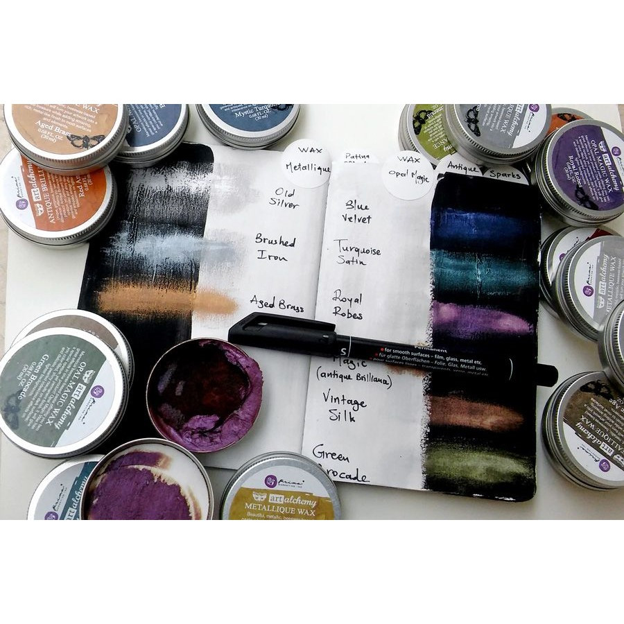 Prima Marketing-Finnabair Art Alchemy Metallique Wax. This metallic beeswax-based paste will give artwork a metal-like finish. Ideal for use with most mixed media surfaces and elements. This package contains 0.68oz of wax. Comes in a variety of colors. Each sold separately. Imported.