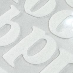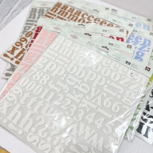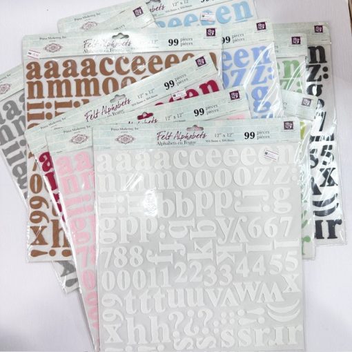 These felt alphabet stickers total 99 pieces in a 12 inch x 12 inch sheet. Each alphabet is almost 3 cm tall. Felt stickers gives a sensory and striking detail to your paper crafting projects. With fabric glue or some stitching they can also be attached to fabric totes and canvas materials. Available in several colors, they are individually sold.