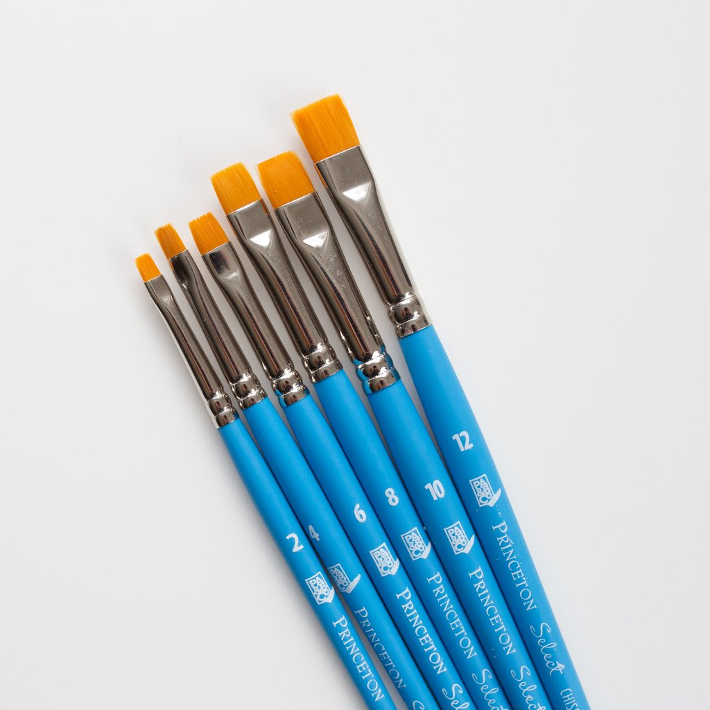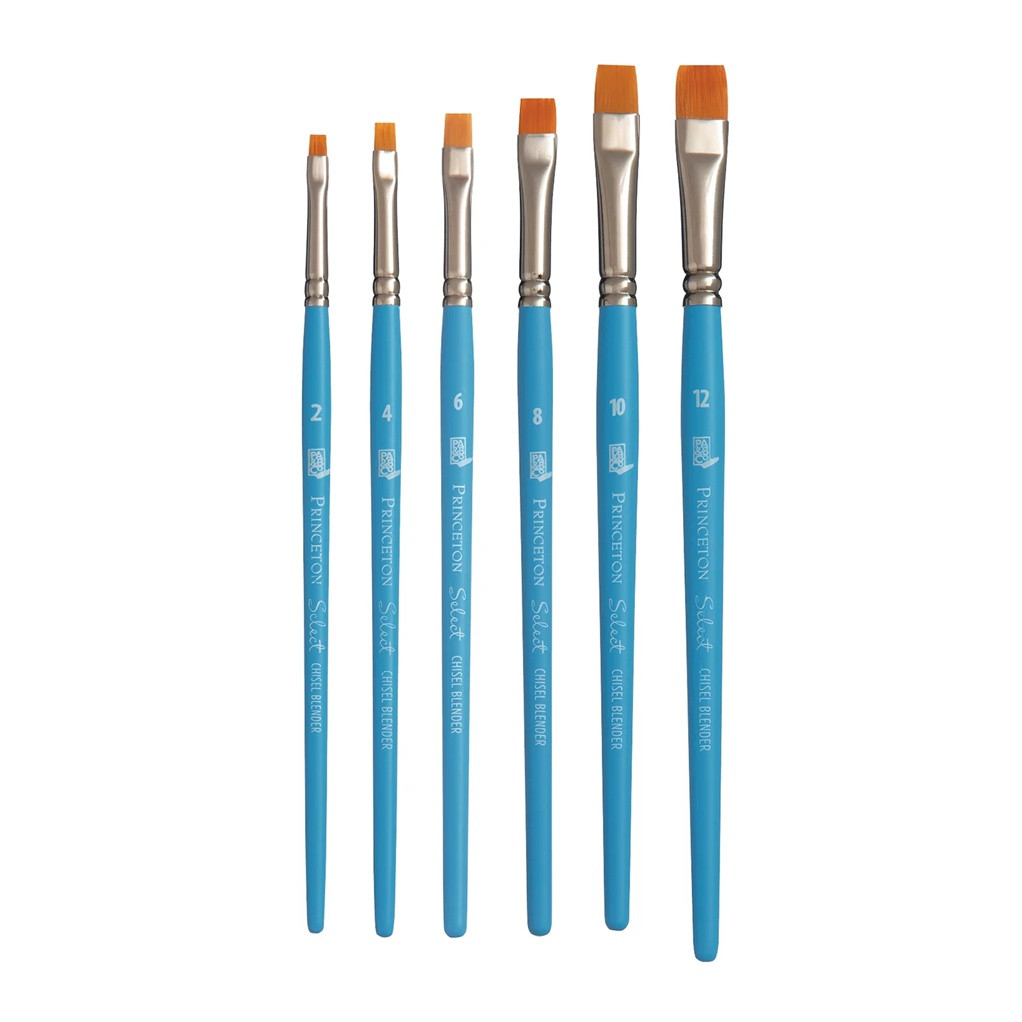 The Princeton Select Artiste Chisel Blender (Series 3750) is a versatile, short-handle synthetic brush designed for precision work, blending, and shading in oil, acrylic, and watercolor. It features stiff, short golden synthetic bristles that maintain a sharp edge, making it ideal for creating fine lines, texture (like fur or feathers), and working in tight spaces.