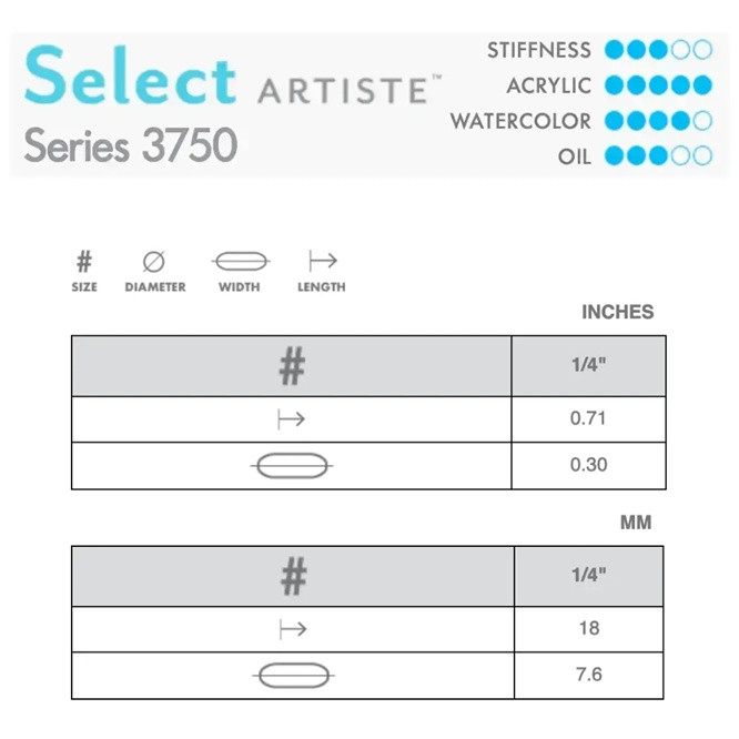 The Princeton Select Artiste Dagger Striper (Series 3750) is a versatile, short-handled synthetic brush designed for artists, offering a 1/4" sword-shaped head ideal for long, flowing lines, pinstriping, and intricate foliage. Its resilient bristles provide medium stiffness, making it suitable for acrylic, oil, gouache, and watercolor.