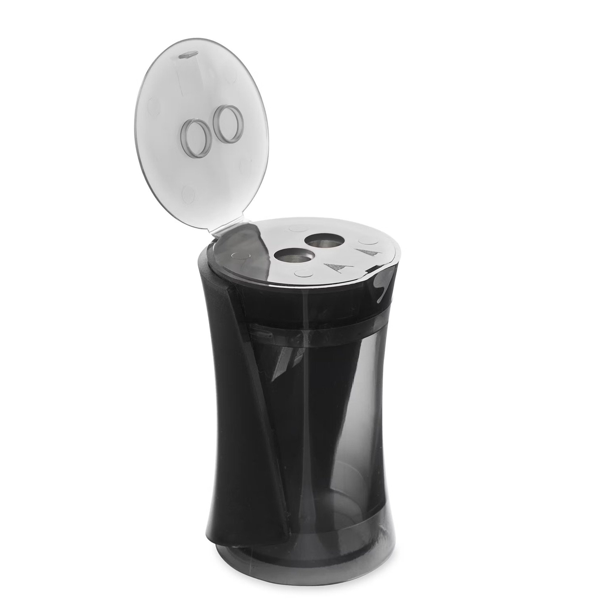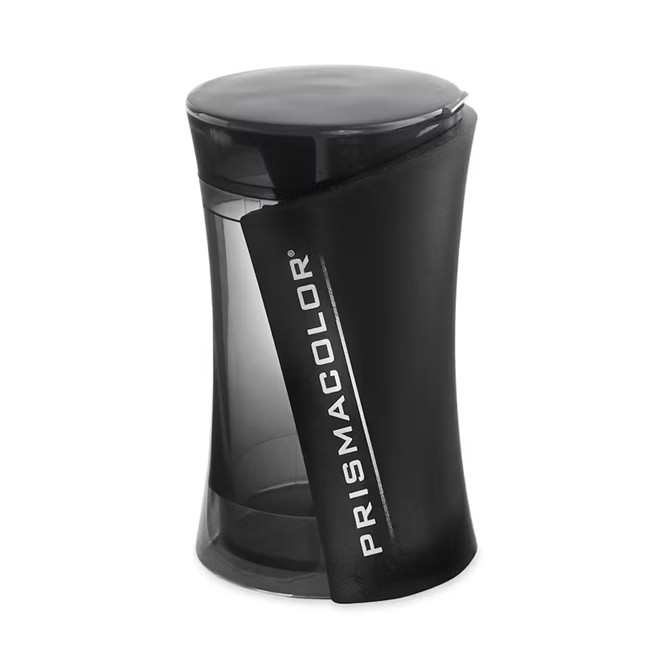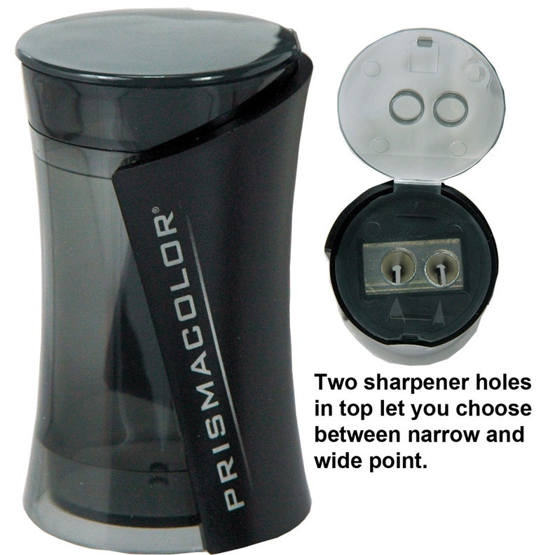Ensure your Prismacolor pencils are always sharp and ready to draw with the Prismacolor Premier Pencil Sharpener. Featuring two different blades, one for a fine point, the other for a wide point, you’ll always have the right level of sharpness for your art projects. The blades of your Prismacolor pencil sharpener are made of premium steel while the black body is translucent, making it easy to see when it’s time to empty it.