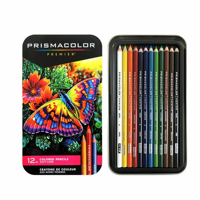 - Package contains twelve pencils in a storage tin (Prismacolor numbers PC903, PC909, PC912, PC916, PC918, PC924, PC932, PC933, PC935, PC938, PC945 and PC946)