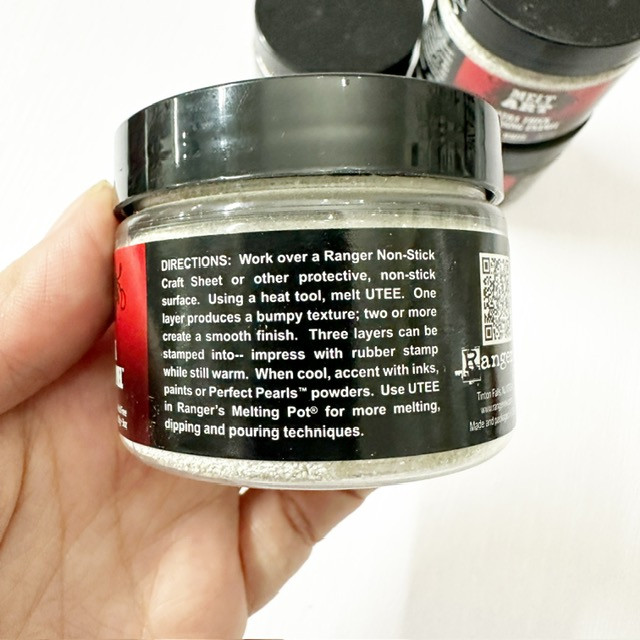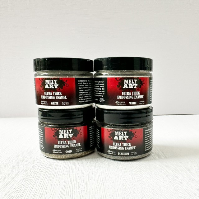 Ranger Melt Art Ultra Thick Embossing Enamel (UTEE) is a large-particle, high-viscosity powder designed for creating thick, dimensional, and glazed effects on paper, jewellery, and mixed-media projects. It melts into a smooth, thick coating and can be used in moulds, for stamping, or to coat items, making it ideal for jewellery.