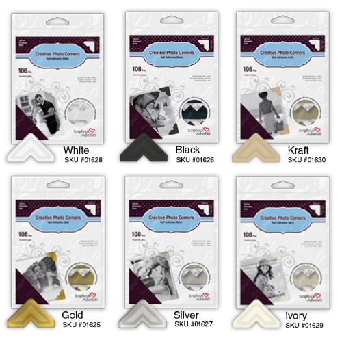 3L CORP-Classic Style Paper Photo Corners. Classic style paper corners in an easy to use self-adhesive version. Perfect for safely adhering photos to scrapbook pages so that they can be taken out without damage. Archival quality, lignin free and PAT approved. This package contains 108 1/2in corners. Available in a vareity of colors: each sold separately. Imported.