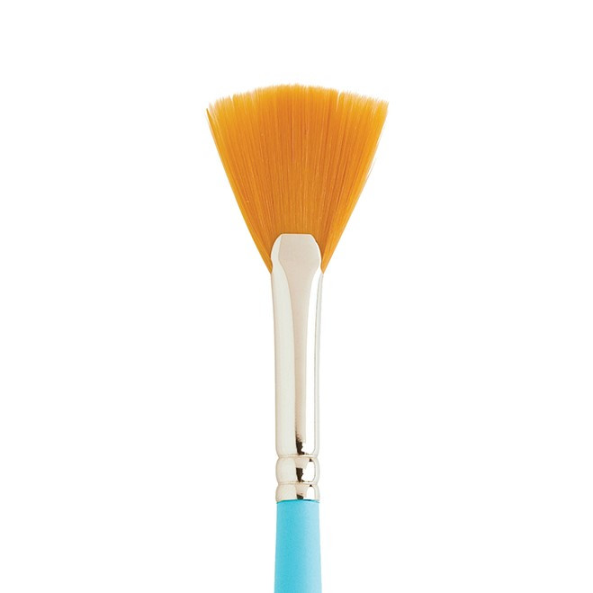 The Princeton Select Artiste (Series 3750) Fan brush is a versatile, affordable multi-media tool, perfect for creating texture, blending, and painting fine details like foliage, grass, or fur. Known for its durable, springy bristle (natural) hair, it is suitable for oils, acrylics, and watercolours, featuring a distinct, short, satin-finish blue handle.
