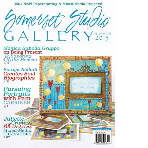 The Summer 2013 issue Somerset Studio Gallery is filled with hundreds of samples of extraordinary artwork presented up close and in detail. Learn how to craft whimsical paperclay creations with help from Julie Haymaker Thompson, pursue the art of portraiture alongside Pam Carriker, devour a beautifully stitched book by Ruth Rae, and enjoy the results fromSomerset Studio’s popular aqua challenge – a surefire way to jumpstart your creativity this season!