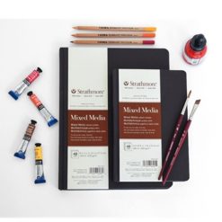 A heavy weight, natural white paper which offers the attributes of a watercolor paper but with a vellum drawing finish. Ideal for wet and dry techniques including light washes in watercolor or gouache.