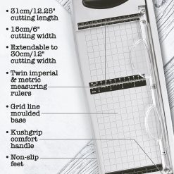 - The Tim Holtz 31cm/12.25" Maxi Guillotine is a long format but portable guillotine. Featuring a hardened stainless steel precision ground blade and an accurate grid built with the card-making crafter in mind. With a Kushgrip comfort handle that stores conveniently under the base and a hardened stainless steel precision ground blade, the Maxi Guillotine is the ideal large format crafter's guillotine. The Tim Holtz 31cm/12.25" Maxi Guillotine offers the following features for the best cutting performance that you can experience: