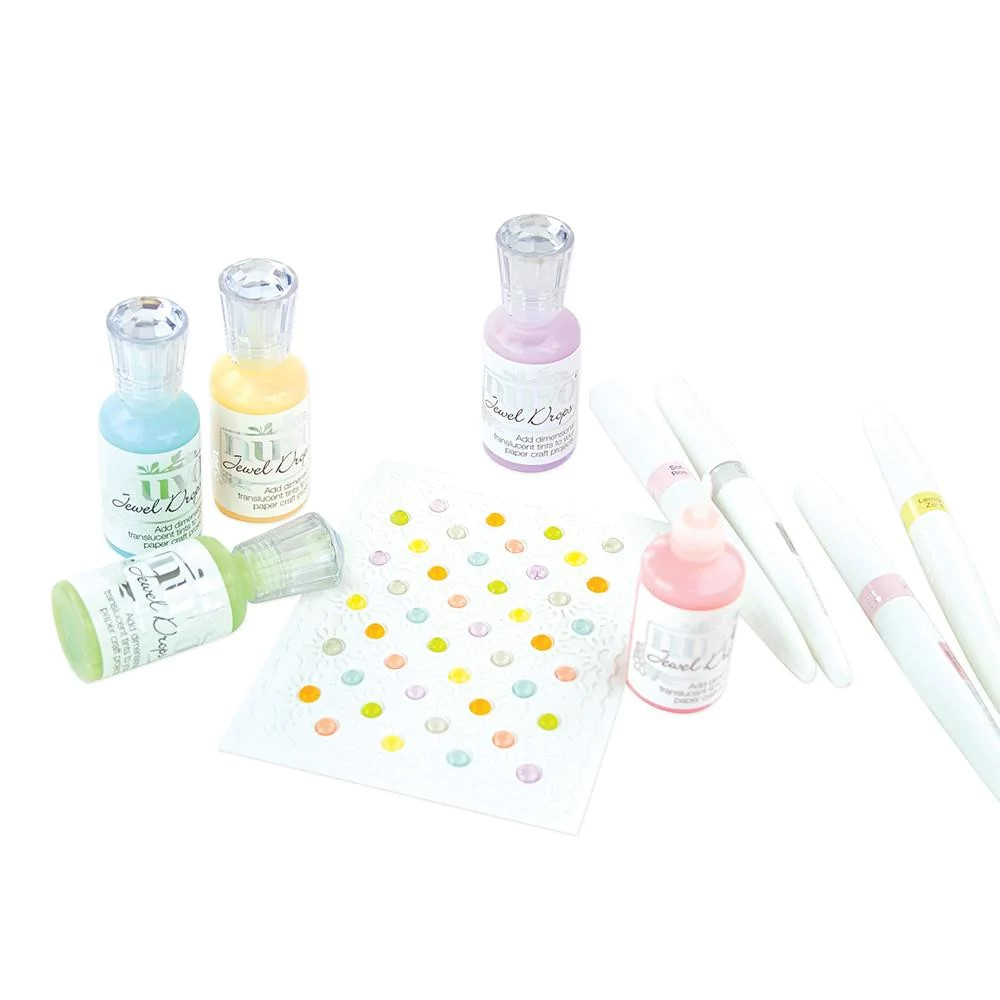 The fantastic Nuvo Jewel Drops create a self-levelling embellishment with a translucent finish. The eight subdued shades provide a softer touch to your design which can be used in combination with various card stocks to create unique effects. The Nuvo Jewel Drop formula dries hard, making them a superb choice for use in a number of projects, from papercraft to home decor.