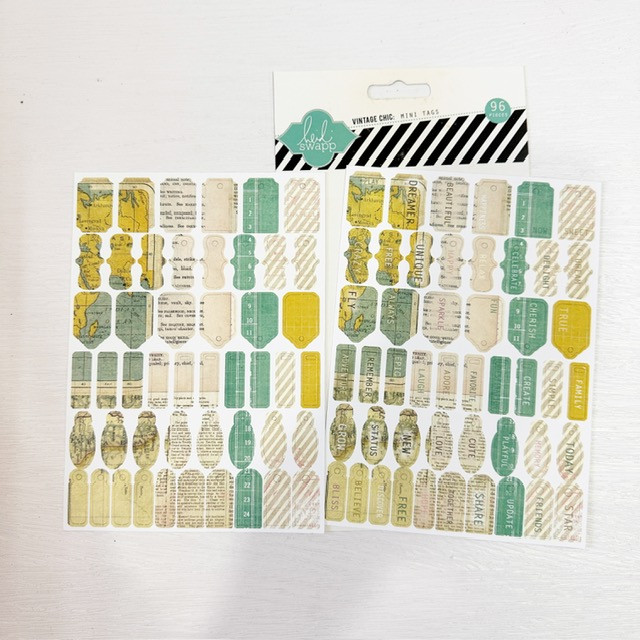 HEIDI SWAPP-Vintage Chic Collection: Mini Tags. Add a bit of vintage flair to your next mixed media project with these mini tags. This 5×9 inch package includes ninety-six mini vintage tags that vary in individual size. Acid and lignin free. Imported.