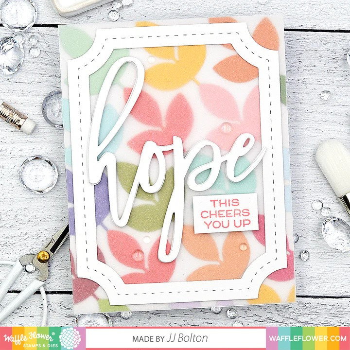 Lift someone’s spirits with the Oversized Hope Word Die (by cardmaker JJ Bolton)! This word die is the same size as its stamp counterpart and can be used with the sub sentiments in the Oversized Hope Stamp set. So easy to create messages of encouragement and support!