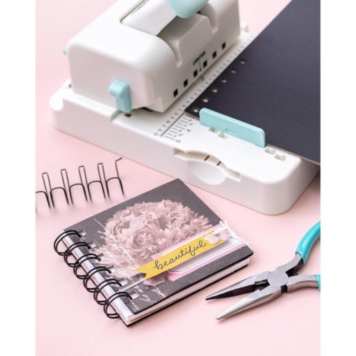 The Mini Cinch Book Binding Machine by We R Memory Keepers makes booking binding quick, easy and affordable, and now comes in a kit with everything you need to get started cinching! It is the best binding tool on the market for home, school and office projects. Punch perfect holes with customizable hole spacing on any size project. The Mini Cinch is great for making mini albums, recipe books, customized journals and planners, presentations and more. This package includes everything you need to get started: One Mini Cinch book binding machine, 16 wires (12-inch), a pair of wire cutters, and six 8.5×11.5-inch black bookboards. Imported.