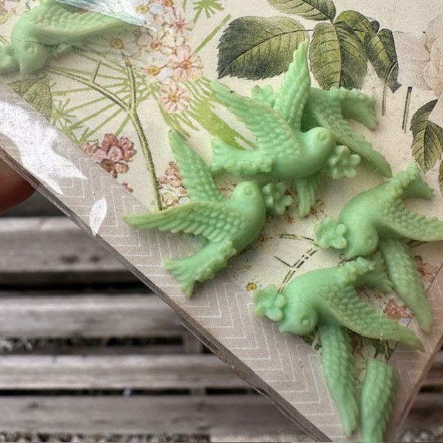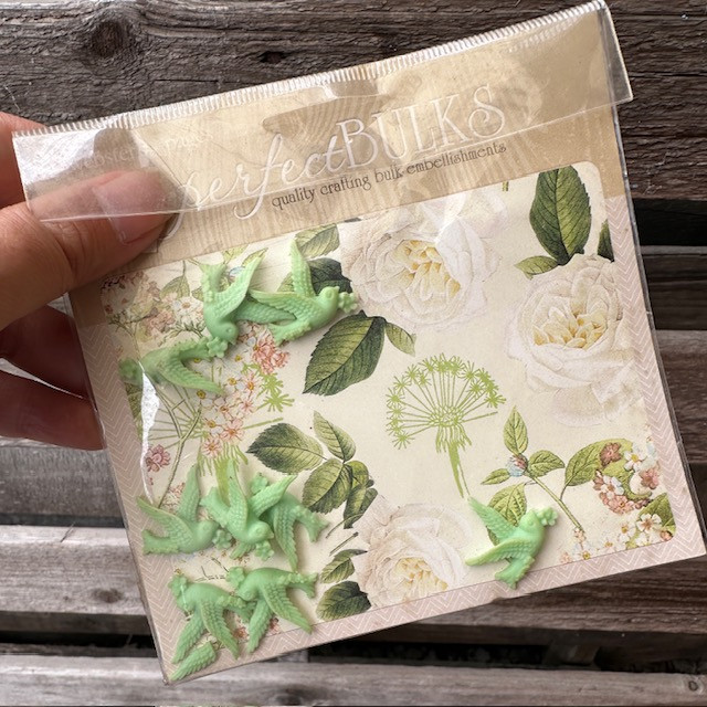 Webster’s Pages – Resin Embellishment (Per Piece) – Green Flying Birds